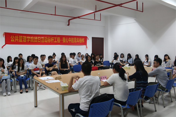 为了深入开展大学生思想政治教育工作,发现和树立大学生身边可亲、可近、可学的先进典型,激励更多的青年学生向先进榜样学习,塑造健全的人格,培养钢铁般的品质,2017年5月9日晚八时,由广州校区公管学院组织部举办的以“我心中的青年榜样”为主题的云顶4008集团官网团日活动标杆工程在广州校区北二636顺利举行。参与人员有2017年优秀研究生梁嘉欣、卢重佑,省级优秀学生干部、国家奖学金获得者陈昭珊,五四公益榜样傅锦韬,团委学生会学生干部及我院2014级各班学生代表。